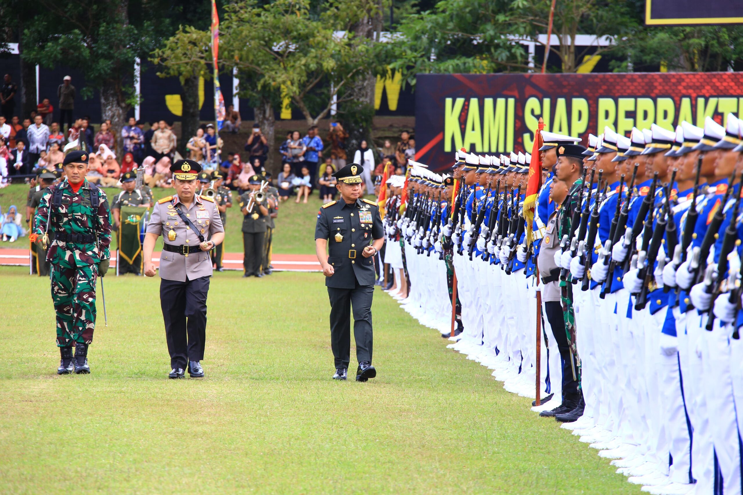 Di kesempatan yang sama, Panglima TNI mengucapkan selamat atas keberhasilan para Prajurit Taruna Akademi TNI dan Bhayangkara Taruna Akademi Kepolisian yang telah menyelesaikan pendidikan kurang lebih selama 4 bulan.