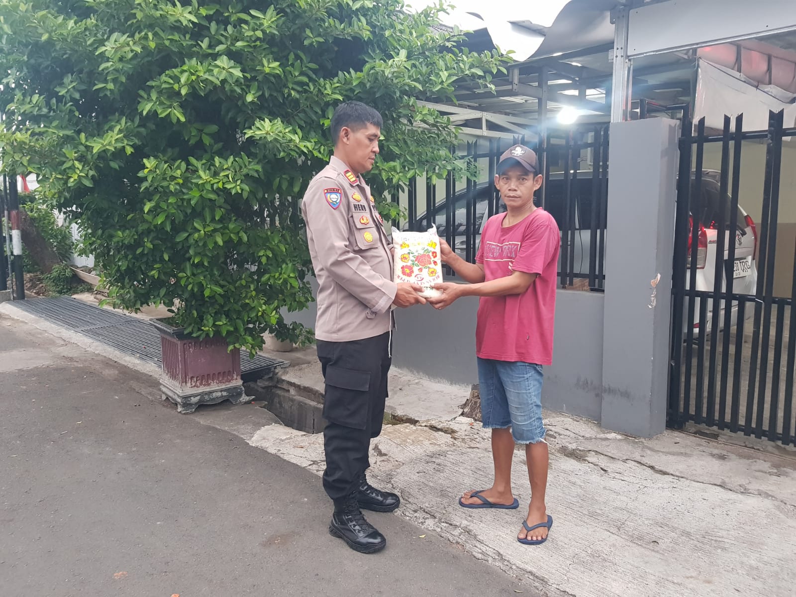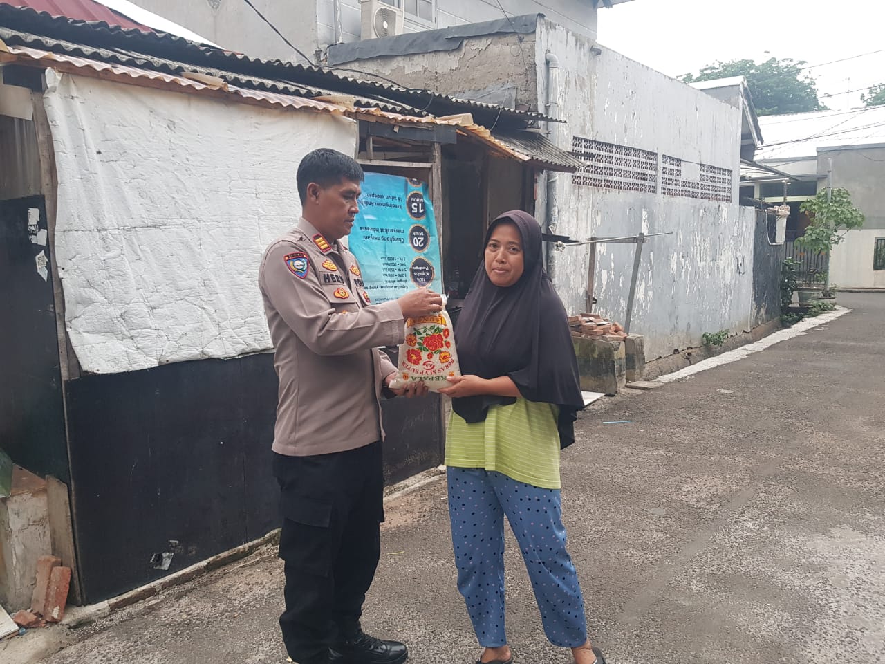 AKP Heru memberikan bantuan kepada warganya yang kurang mampu yakni Abil dan Empok yang hanya bekerja tukang sampah dan janda.