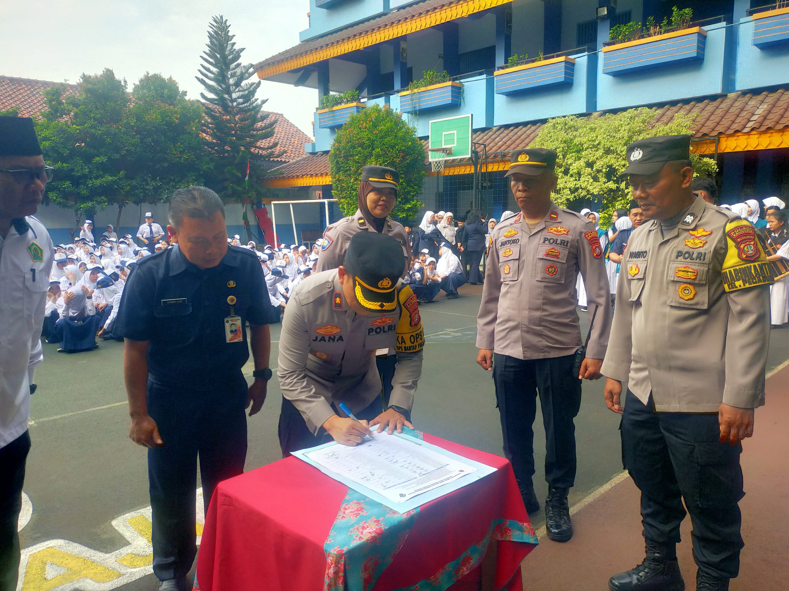Setelah amanat Kapolsek, acara dilanjutkan dengan penandatanganan MoU sebagai simbol komitmen bersama untuk menciptakan lingkungan sekolah yang aman dan kondusif.