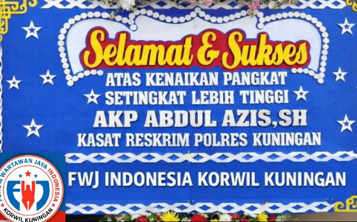 Globaliconnews.idKUNINGAN–Forum Wartawan Jaya Indonesia (FWJI) Koordinator Wilayah Kabupaten Kuningan menyampaikan ucapan selamat dan sukses atas kenaikan pangkat setingkat lebih tinggi kepada AKP Abdul Azis, S.H, yang saat ini menjabat sebagai Kepala Satuan Reserse Kriminal (Kasat Reskrim) Polres Kuningan.