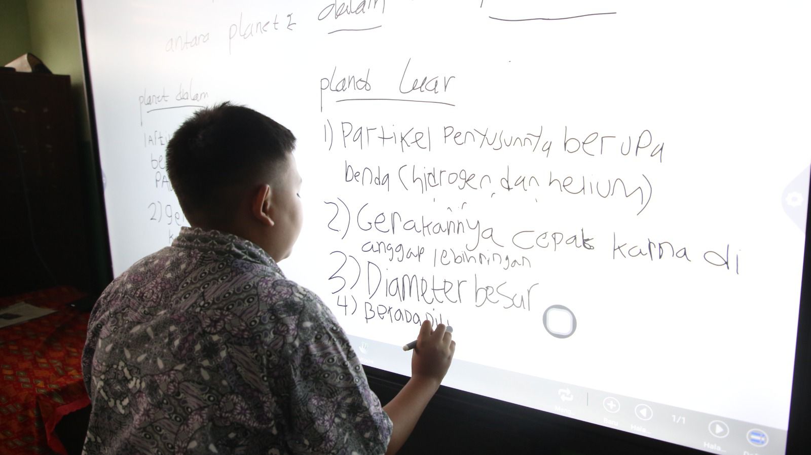“Kami menyediakan kelas khusus untuk panel interaktif. Setiap kelas akan mendapatkan waktu selama satu jam untuk belajar menggunakan panel interaktif. Selanjutnya, akan bergantian dengan kelas lainnya. Sehingga, semua murid mendapatkan pembelajaran yang menarik dan menyenangkan,” ujarnya.