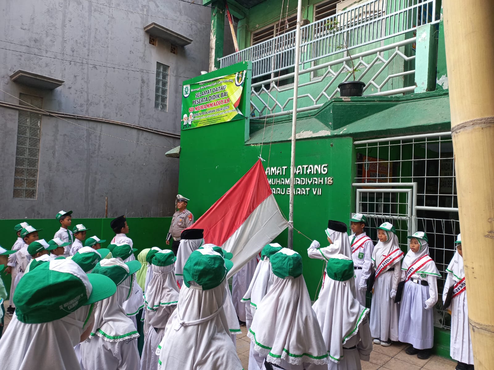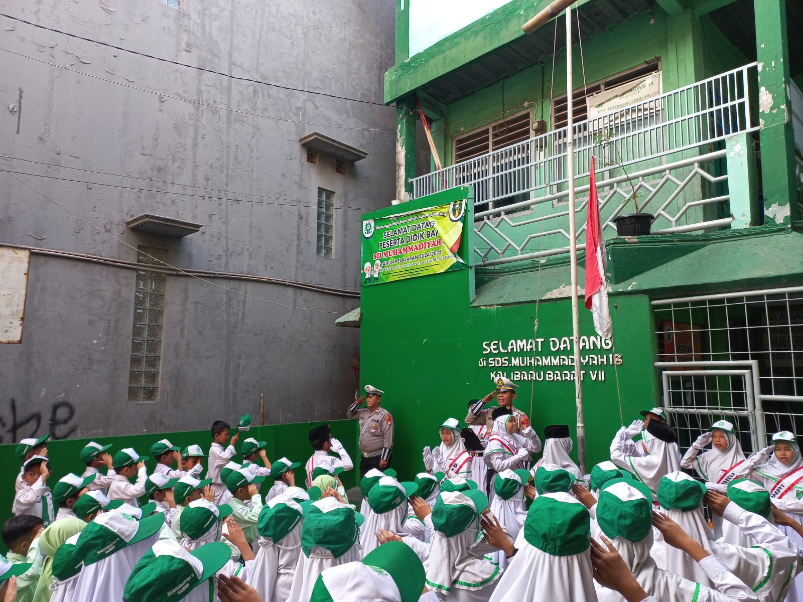 JAKARTA,Globaliconnews.id|| Kanit Lantas Polsek Kawasan Kalibaru Polres Pelabuhan Tanjung Priok, AKP Hery Yuliantoro, S.H. menjadi pembina upacara pada pelaksanaan kegiatan upacara bendera di SDS Muhammadiyah 18 Kalibaru, Senin, 09 September 2024 pukul 06.30 WIB.