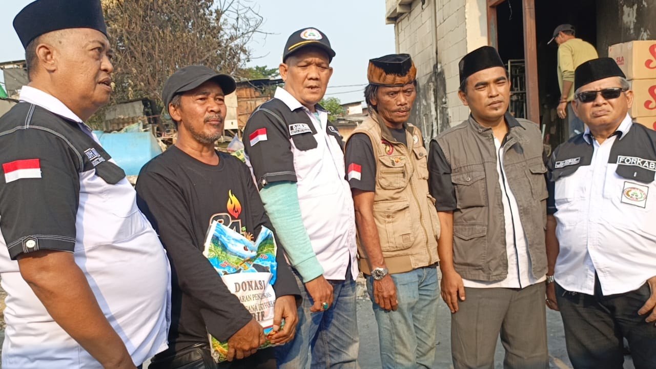 Pengurus Pusat Siaga Bencana Inti Forkabi ( SBIF ) DKI Jakarta Eko Suherman dan Ketua SBIF Jakarta Utara Eman Sulaeman Menyalurkan Bantuan Kebakaran Kapuk Muara