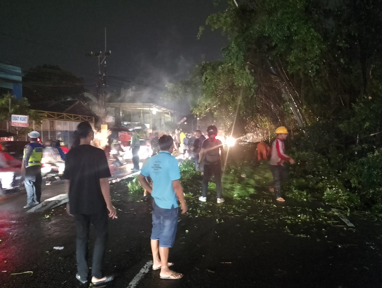 Piket Patroli Polsek Sukmajaya Segera Bertindak di Lokasi Kecelakaan Pohon Tumbang