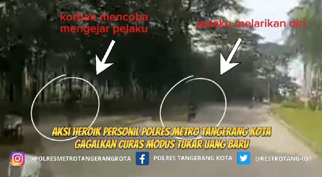“Saya dalam perjalanan pulang lepas dinas, melintas di jalan Cluster Dwipa Citra Raya, melihat maling dengan modus pura-pura menukar uang baruan, Namun malah membawa kabur uang pecahan 5000an, dengan total 5 juta rupiah. Langsung saya tabrak dan saya lumpuhkan. Setelah itu datang piket Reskrim Polsek Panongan untuk mengamankan,” tulis dalam keterangan Video disukai lebih dari 2.000 orang itu.
