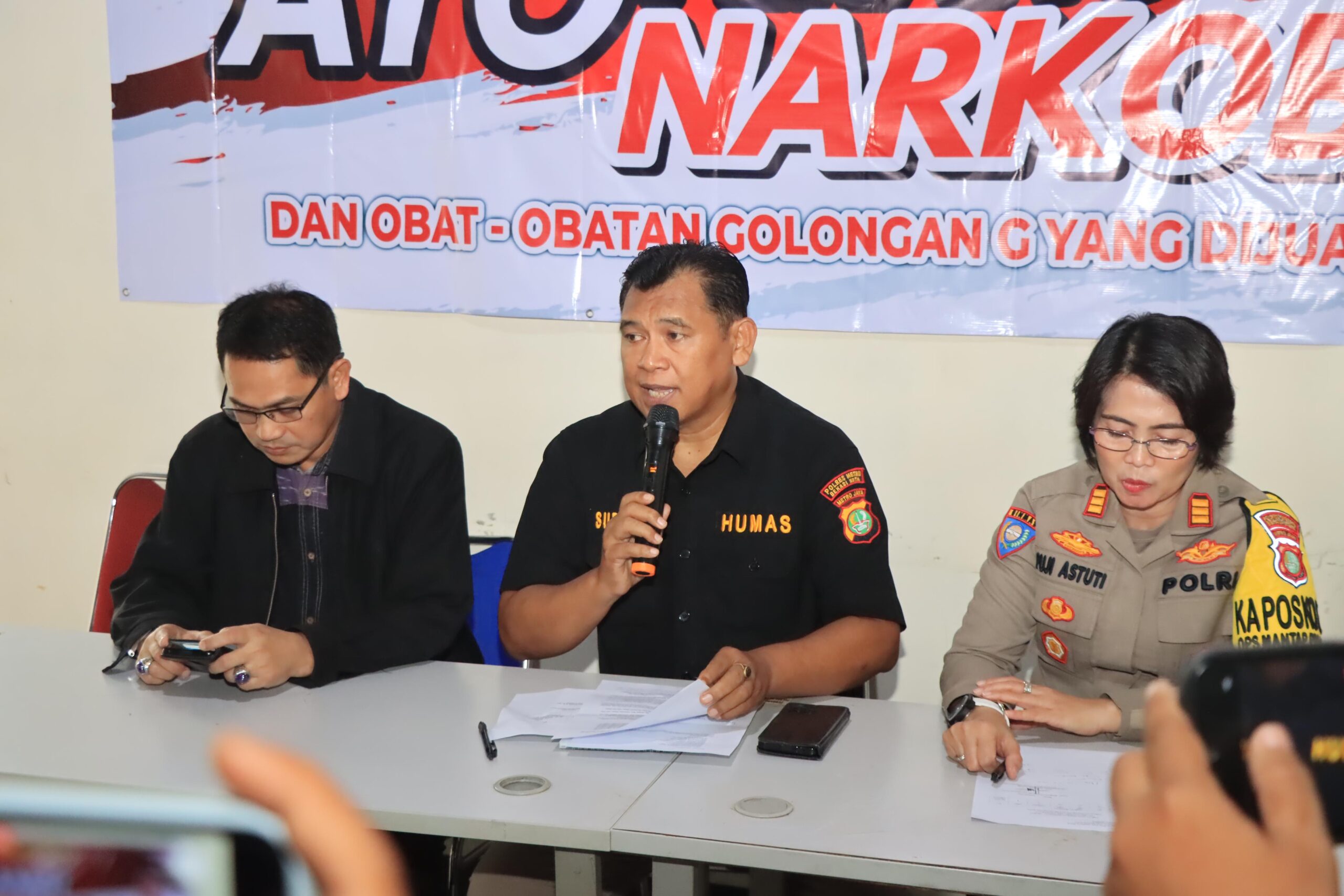 Kasat resnarkoba yang diwakili Wakasat Kompol Suwolo Seto menyampaikan dalam menindak Lanjuti adanya laporan masyarakat terkait adanya peredaran obat – obat daftar G di Kota Bekasi sudah maksimal serta berhasil mengamankan para tersangka dan melakukan proses hukum yang berlaku.
