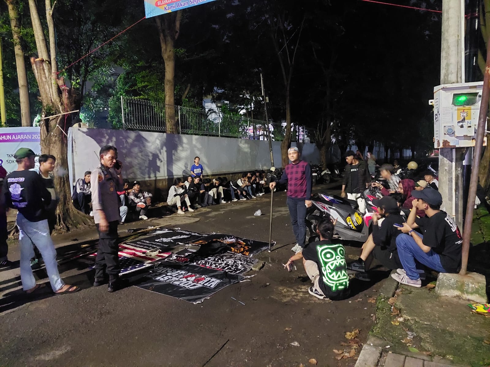 “Mereka kedapatan sedang melaksanakan itu (buka puasa on the road) di belakang Mall Cipinang Indah,” terang Sutikno. Puluhan remaja yang terdiri dari laki-laki dan perempuan itu langsung diamankan polisi yang sedang berpatroli. Barang bukti yang juga diamankan ke Polsek Duren Sawit adalah motor, bambu, dan spanduk. Usai digiring ke kantor polisi, para remaja itu dibawa ke bagian belakang gedung. Di sana, mereka disuruh berbaris untuk keperluan pendataan. “Selanjutnya untuk sementara nanti, (diamankan) 1×24 jam untuk dilakukan pemeriksaan, diproses lebih lanjut,” pungkas dia.//c2p