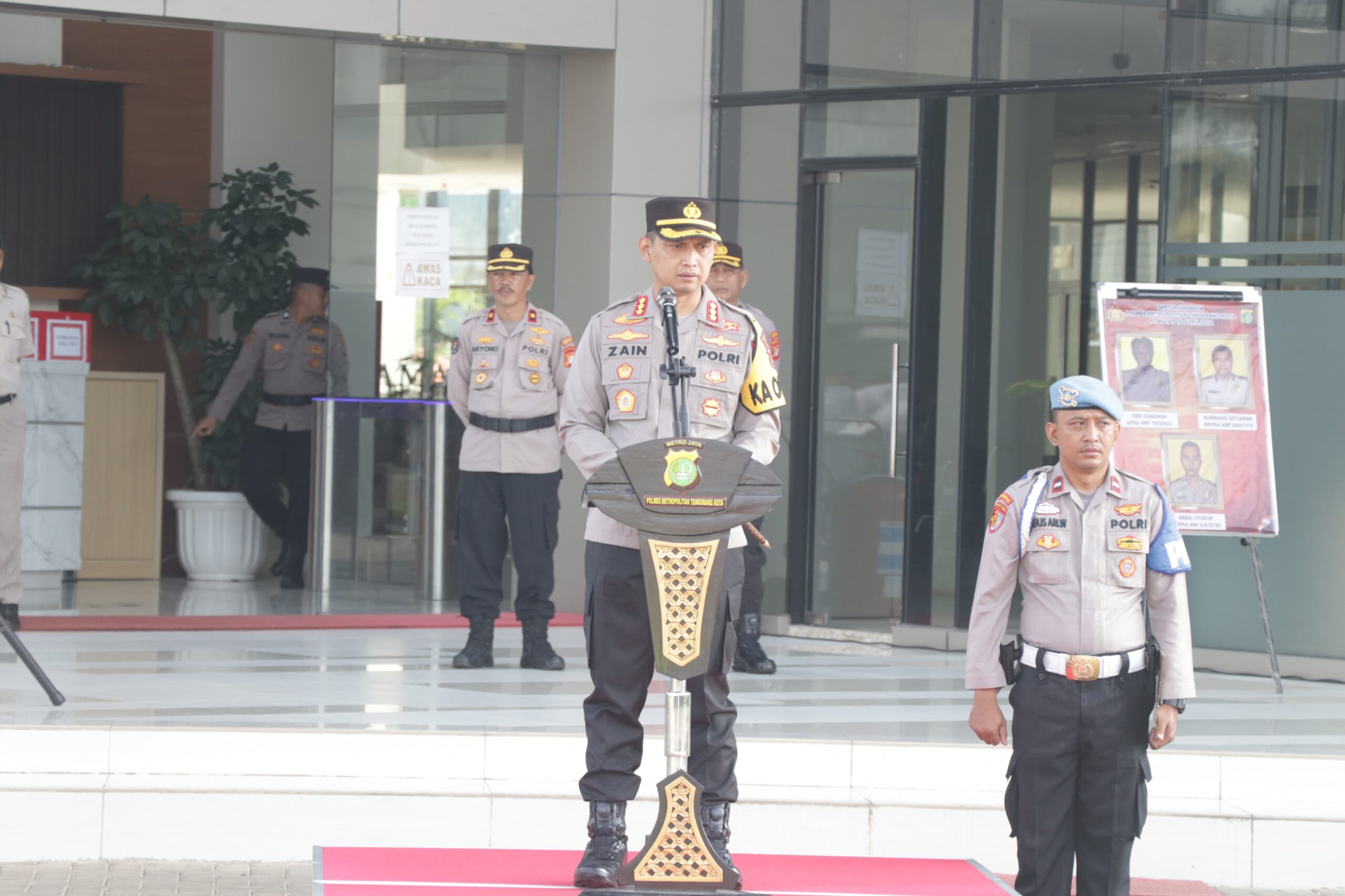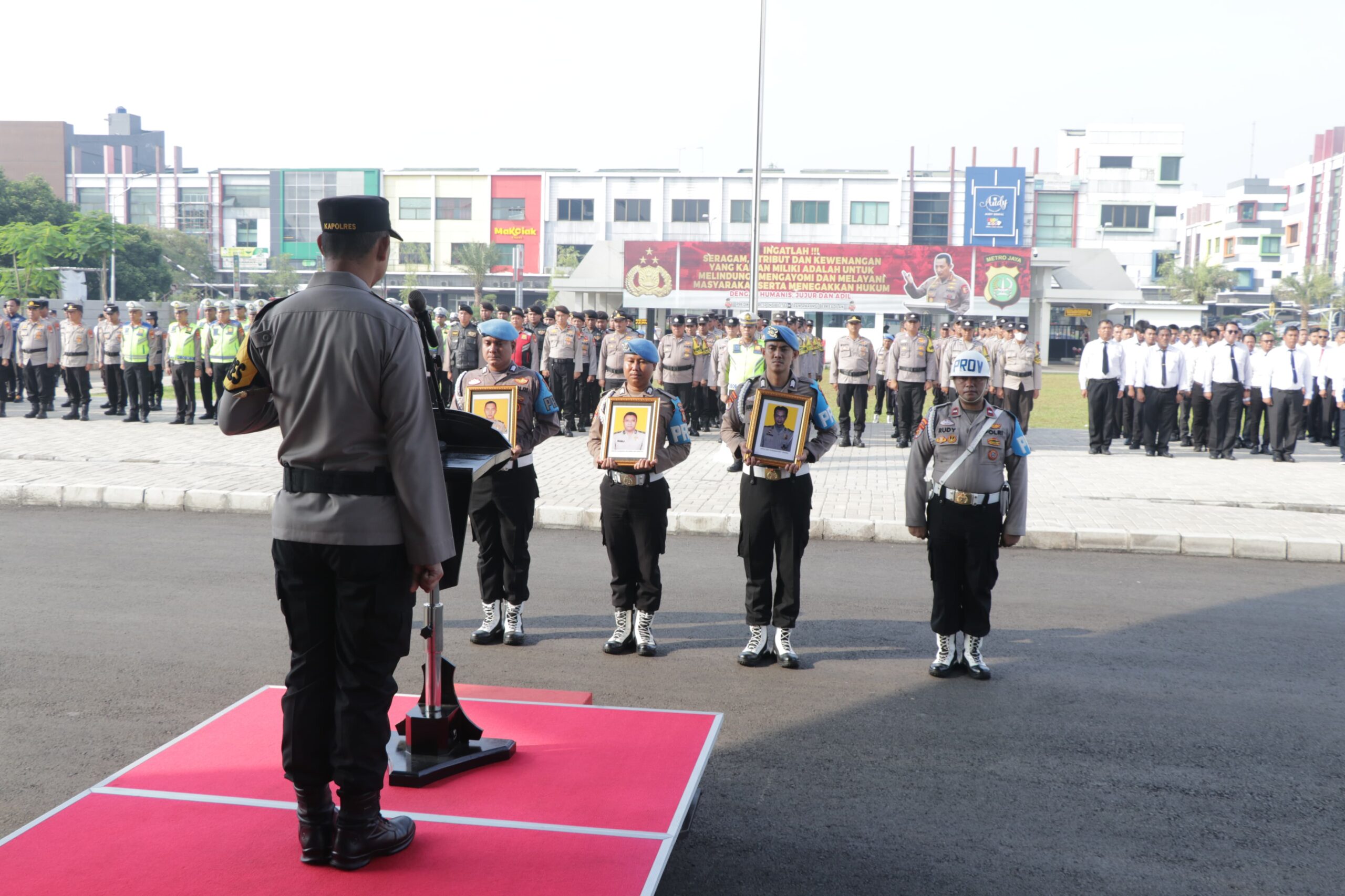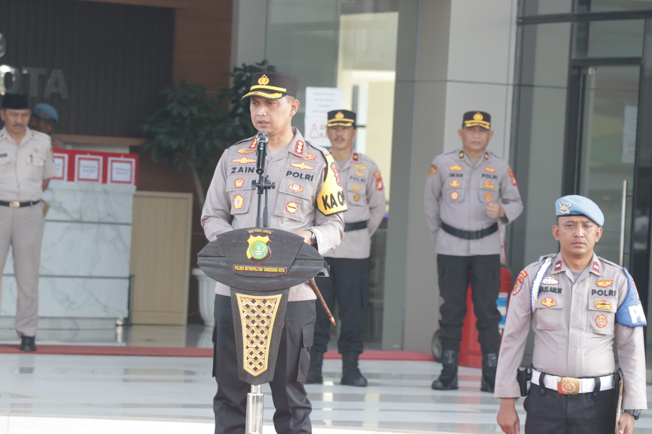 Upacara dipimpin langsung Kapolres Metro Tangerang Kota, Kombes Pol Zain Dwi Nugroho, dihadiri Wakapolres AKBP Yolanda Evalyn Sebayang dan Pejabat Utama (PJU) Polres Metro Tangerang Kota.
